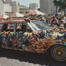The art car phenomenon is recent, appearing roughly in the last fifteen years. However, the impulse to decorate one’s automobile or truck stretches back in time and crosses continents. Consider the vehicles in the Philippines, Cuba, Mexico or Pakistan whose colorful decoration often invokes the protection of the Virgin or the gods. The art car concept in the United States is fundamentally secular, although religious subject matter is sometimes used, and derives a significant part of its inspiration from hot-rods, racers, classics, Jesus buses, low-riders and hippie vans.